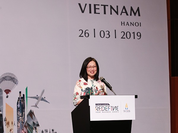 Left: Nichapa Yoswee, TCEB’s Senior Vice President-Business at Thailand MICE Road Show 2019 in Hanoi, Vietnam.